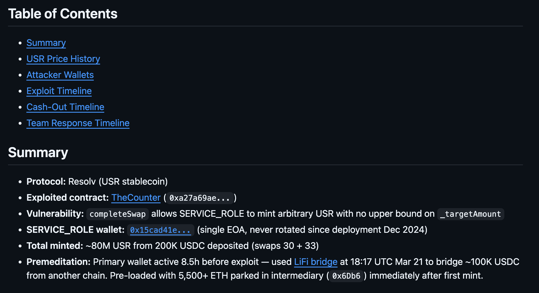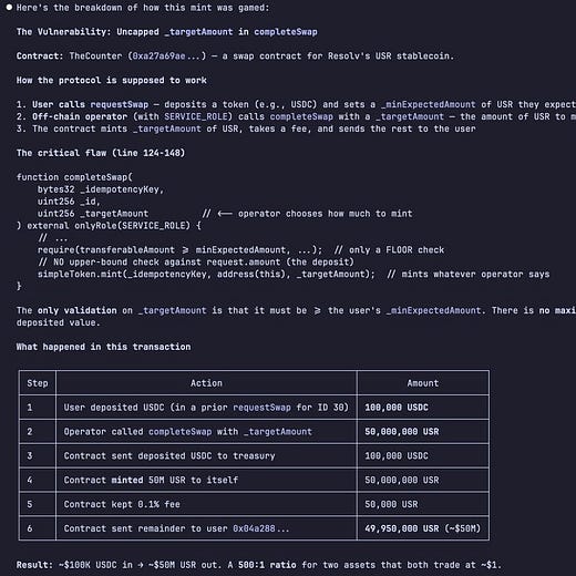 Resolv's USR stablecoin was hacked for $80m this weekend, and I was one of the first to analyze and monitor it because of Claude Code and Herd MCP.